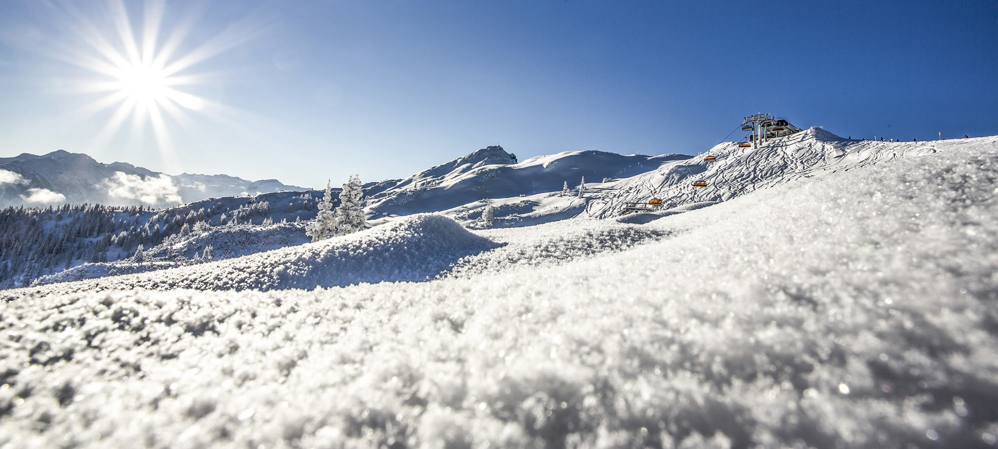 Übrigens das Hauptbüro der Skischule befindet sich ebenso im Gebäude der Talstation Gondelbahn Achterjet. Und auch das Kinderland ist nicht weit entfernt. Sie sehen also - alles zu Fuß erreichbar!